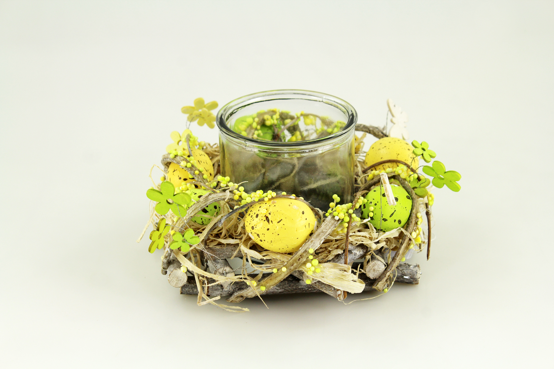 CORONA RATAN CON VIDRIO 21 X 21 X 11 CM, AMARILLO/VERDE
