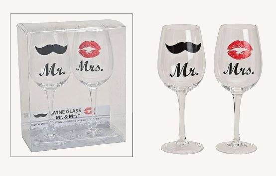 JUEGO DE COPAS DE VINO MR.&MRS. 2 PIEZAS 430ML 22CM H