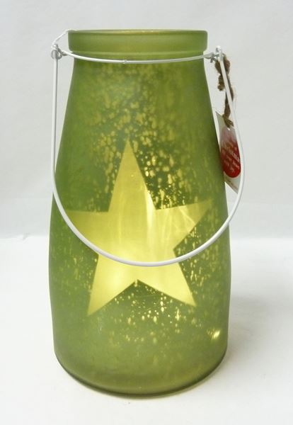 VASO CRISTAL C/ESTRELLA 10LED 13X15CM VERDE – NO INCLUYE PILAS