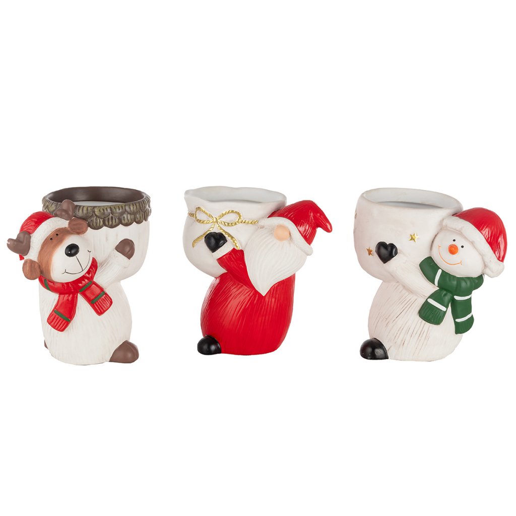 JARRONES TERRACOTA C/CARA PAPÁ NOEL, 36X32X30 CM