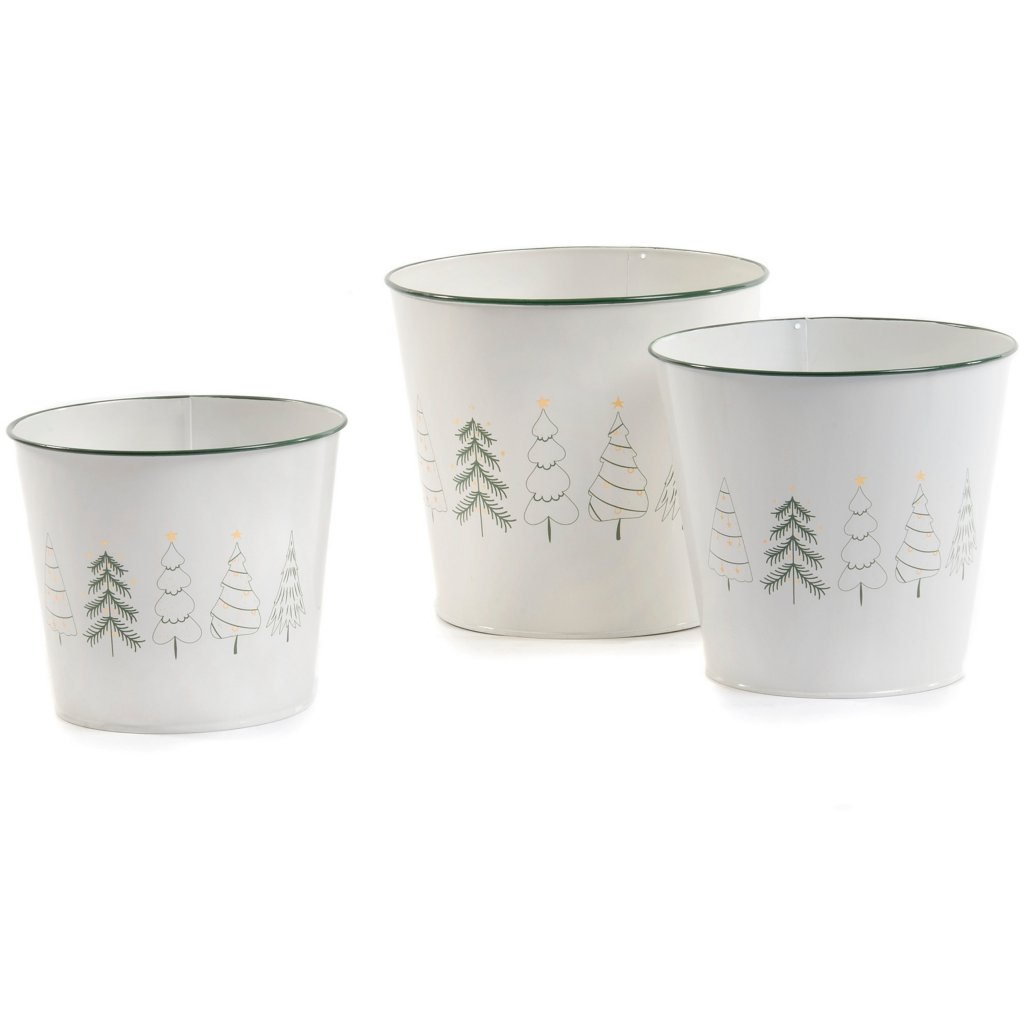 MACETERO METAL S/3 BLANCO C/ARBOLES NAVIDAD S.D.17H14,5 BD.21H19