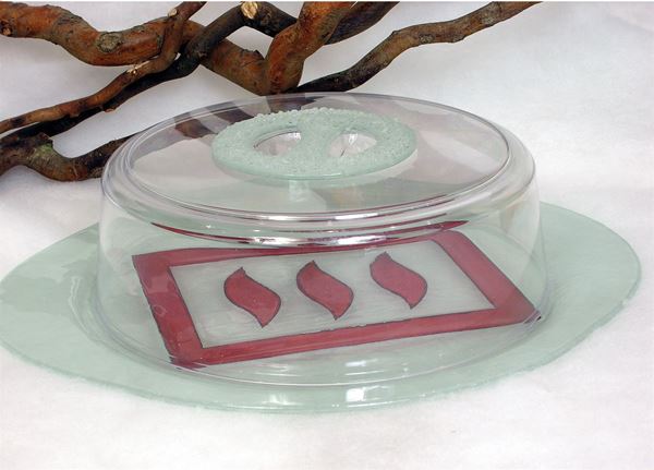 BANDEJA TARTA CRISTAL MURANO C/TAPA PLASTICO 43*38