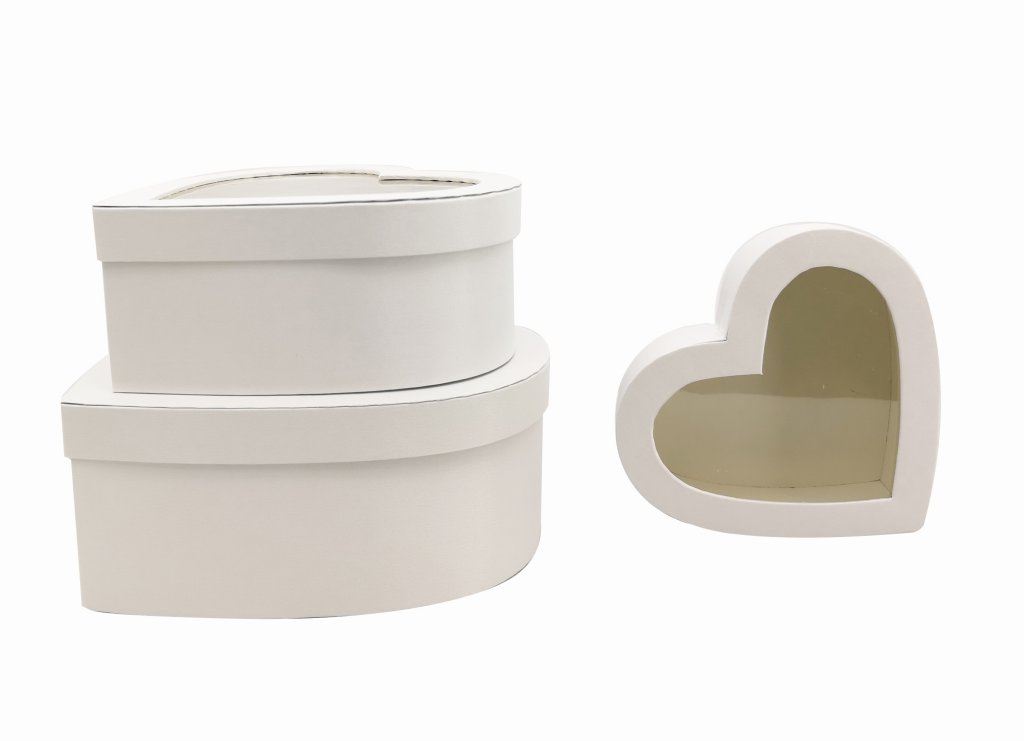 CAJA RASO S/3 CORAZON TAPA TRANSP BLANCA P.22X19.5 H9 GR.30.5X28 H12.