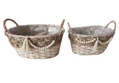 OVAL C/ASA S/2 BOHO CREMA C/DECORACIONES Y NAPA P 22X15 H12-GR 28X20 H13 (D0380.31)