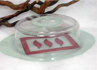 BANDEJA TARTA CRISTAL MURANO C/TAPA PLASTICO 43*38 (MM 005)