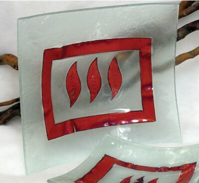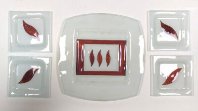 SET BANDEJA + 4 PLATITOS CRISTAL MURANO 32*32 (MM 003/1)