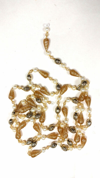 CORDON PERLAS BLANCAS Y ADORNOS DORADOS 3 MT (KA 088)