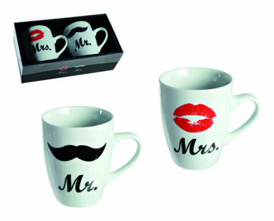 JUEGO DE TAZAS MR/MRS DE PORCELANA, 10 CM, SET 2 PZ, 300ML (WU-10828)