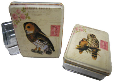 LATA DE METAL, BÚHO, 4X10CM, 2 DIF. MIN 2 UND (PO-9074)