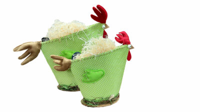PORTAHUEVOS TELA GALLO EN EL NIDO VERDE 42X11XH.35 (CO2527415)