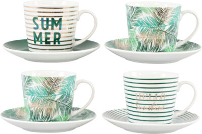 TAZAS “HELLO SUMMER” 4PZ BOX: 35,5X16,5X9CM, TELLER: Ø14X2CM, , TASSEN: Ø8X2,5 – FÜLLMENGE 175ML (HO-4977)