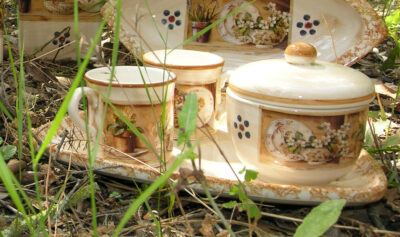 SET TAZAS CAFE+AZUCARERO+BANDEJA PROVENZA (LC 008)