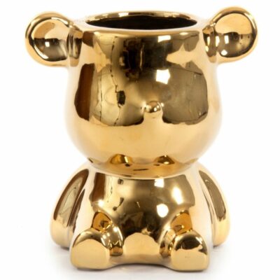 OSO CERAMICA C/MACETERO EN CABEZA ORO 19X14X19.5 (65591G)