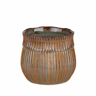 CERÁMICA RAYADA MARRÓN/VERDE MACETERO, DIAM. 18 X 16 (58903)