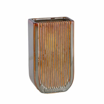 FLORERO RECT. RAYADA MARRÓN/VERDE, DIAM. 14.5 X 9 X 25 (58905)