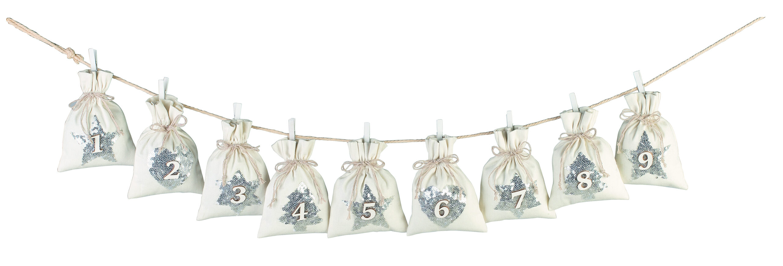 CAL.ADVIENTO SAQUITOS+PINZAS BLANCOS 120X150