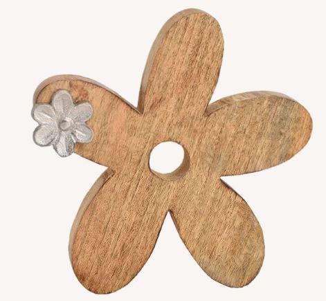 FLOR, MADERA MANGO, METAL, MARRON PLATA, 15X15X3CM