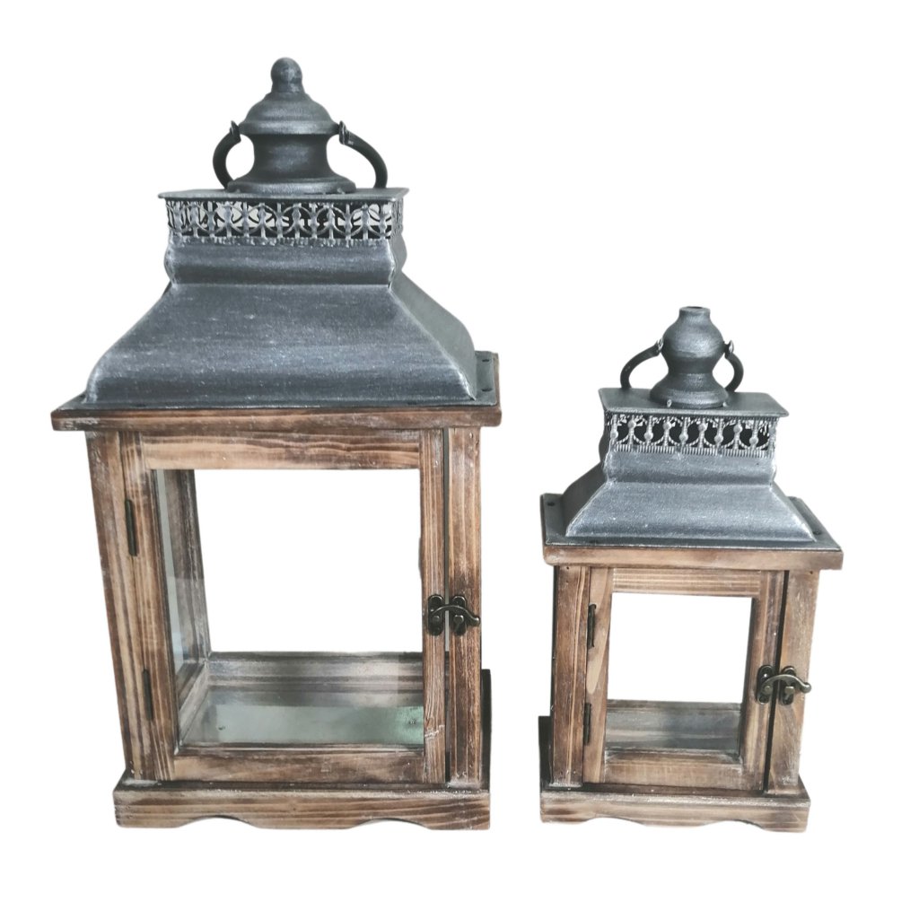 LINTERNA S/3 MADERA/METAL COBRE VIDRIO STILE COUNTRY.P.13,2X12H29 GR.24X23H50,6