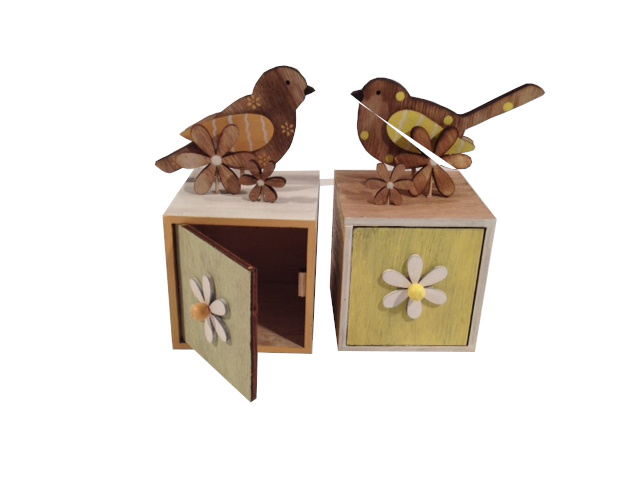 PAJARITO ENCIMA CAJITA MADERA 2 COL SURT. 9X9 H18 MIN 2 PZ
