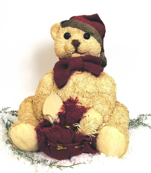 OSITO TEDDY DE PAJA CON SACO ROJO ALT.35 CMS.